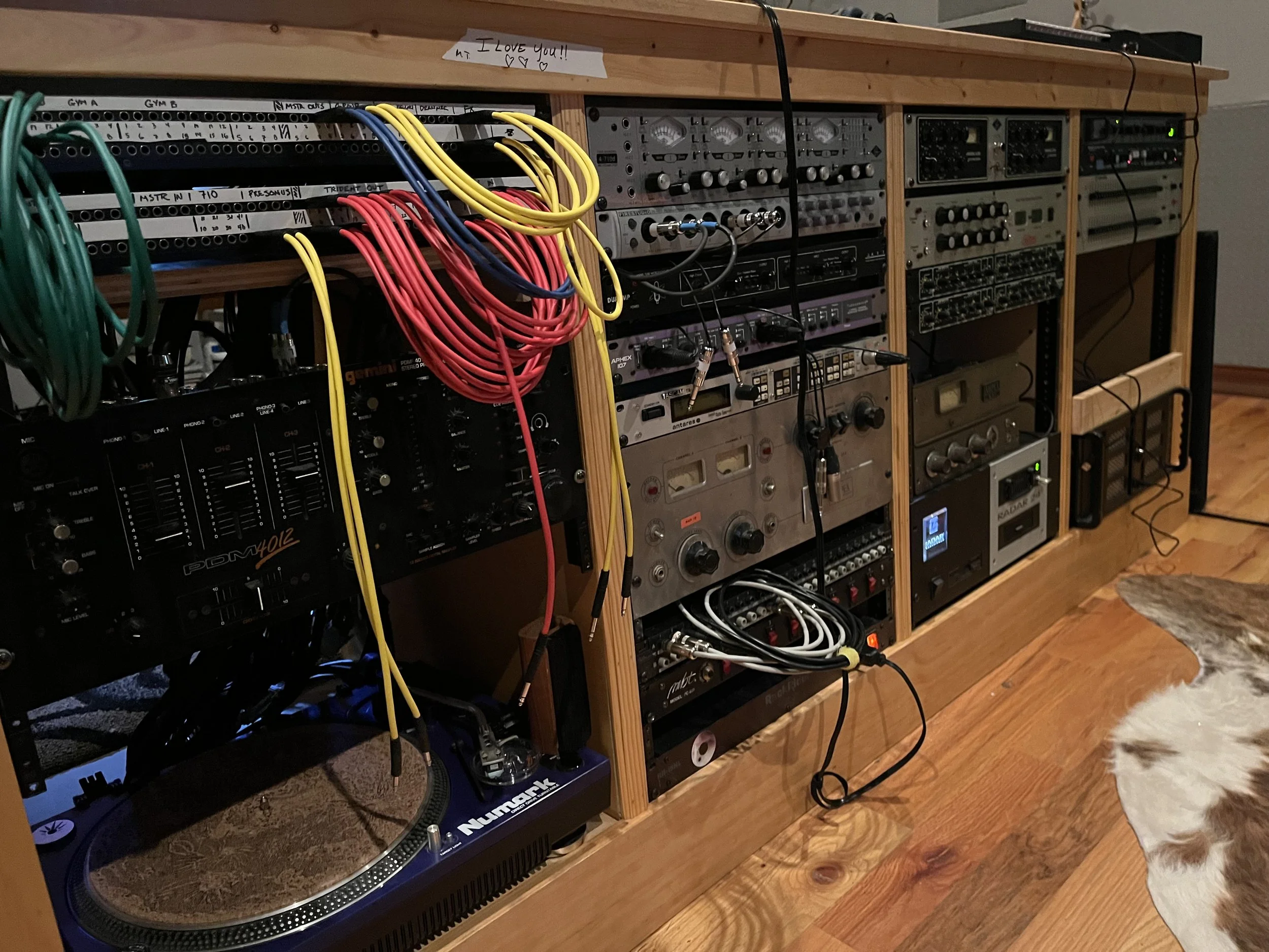 I took over the operation of the studio in 2013, moving all of my gear out of the dining room and into this very legit space! We now feature a new Trident analog mixer, iZ RADAR A/D and D/A conversion, Mogami wiring, Pro Tools editing and mixing, Ableton sequencing and all kinds of plug-ins.